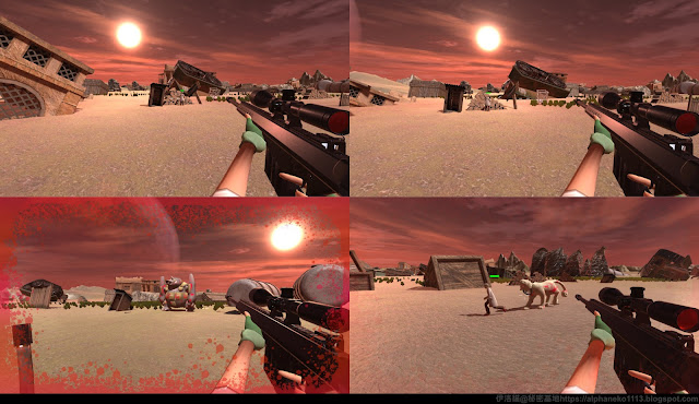 這作跟之前介紹過的瑪利歐64FPS相同,都是用邊框來顯示血量,受傷越多邊框會變得越來越紅,但會隨時間經過而回復